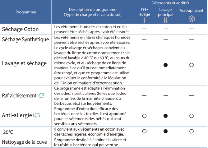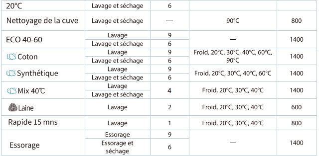 Lisez le chapitre TABLEAU DES PROGRAMMES dans le mode d'emploi de la notice