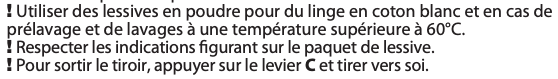 Lisez le chapitre TIROIR À PRODUITS LESSIVIELS dans le mode d'emploi de la notice