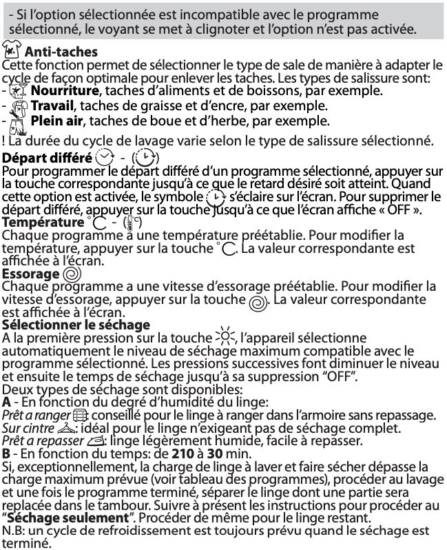 Notice Indesit BDE864359WFR : Section OPTIONS