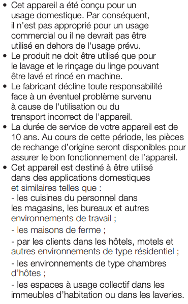 Notice Beko WTV8712BS1W : Section Utilisation prévue