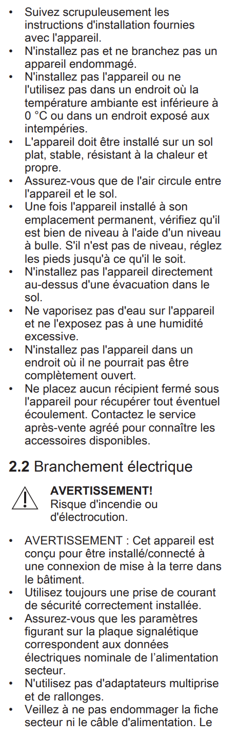 Notice Electrolux EW6F3854AG : Section CONSIGNES DE SÉCURITÉ