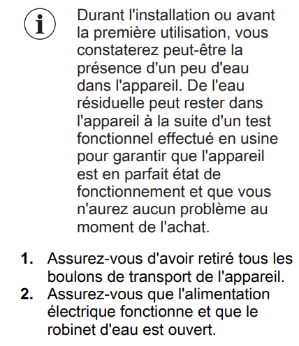 Lisez le chapitre AVANT LA PREMIÈRE UTILISATION dans le mode d'emploi de la notice
