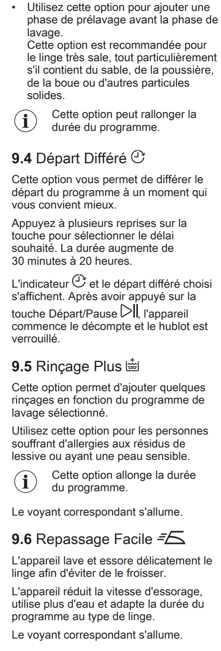 Notice Electrolux EW2F7144DN : Section OPTIONS