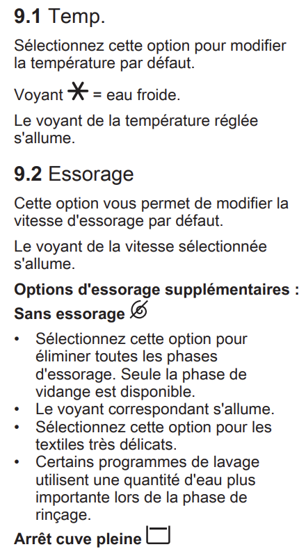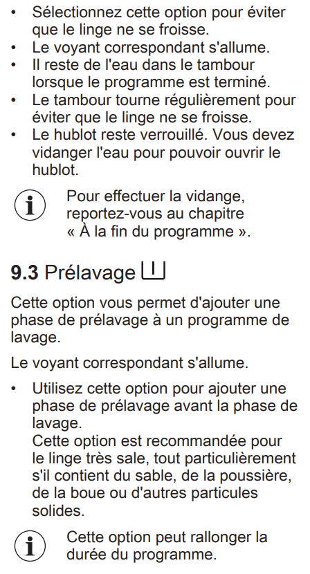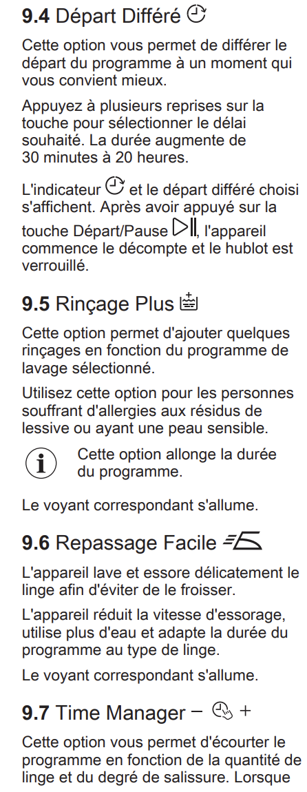 Notice Electrolux EW2F7814FA : Section OPTIONS