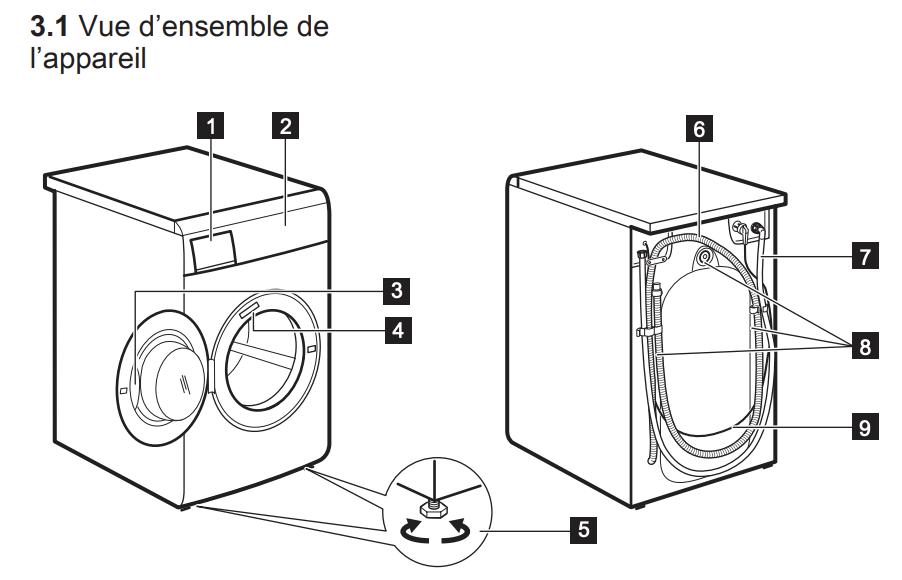 Notice Electrolux EWC1351 : Section DESCRIPTION DE L'APPAREIL