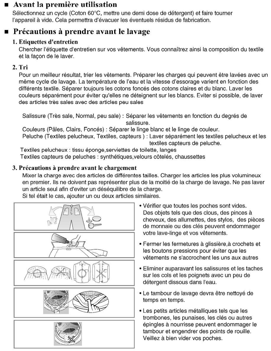 Notice LG F74690WH : Section Précautions à prendre avant le lavage