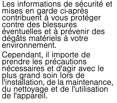 Lisez le chapitre Consignes de sécurité dans le mode d'emploi de la notice