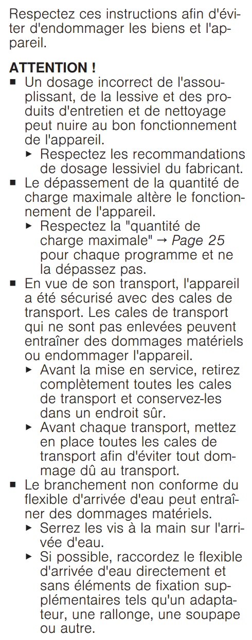 Notice Bosch WAN28228FF : Section Prévention des dégâts matériels