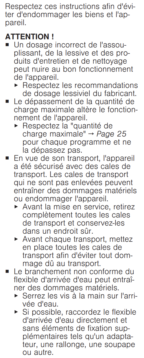 Notice Bosch WAN28238FF : Section Prévention des dégâts matériels