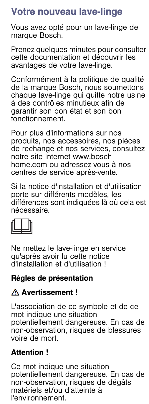 Notice Bosch WAN28170FF/32 : Section Introduction