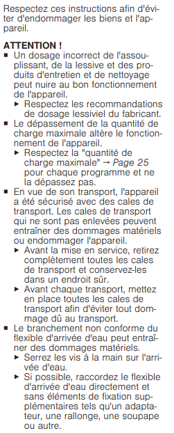 Notice Bosch WAN28209FF : Section Prévention des dégâts matériels
