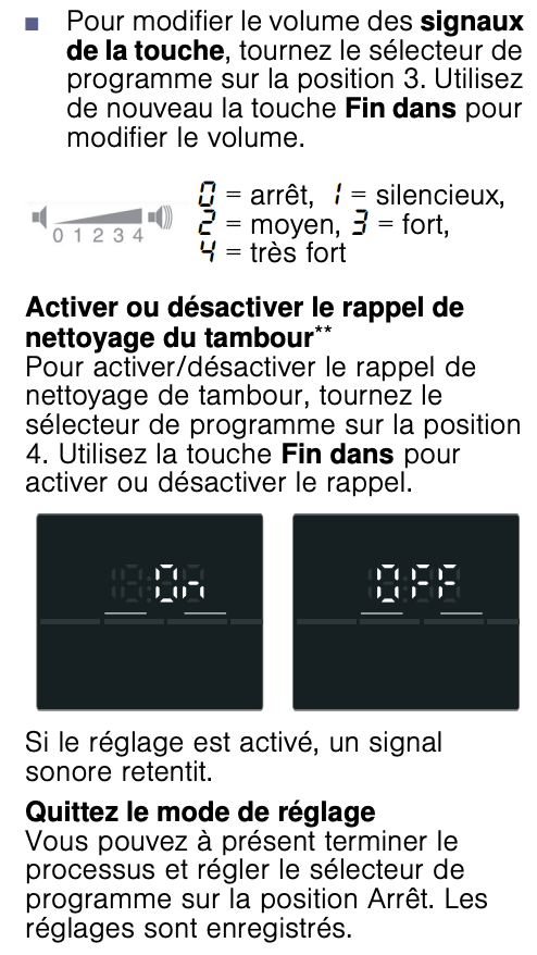 Notice Bosch WAN2816OFF/32 : Section Réglages de l'appareil