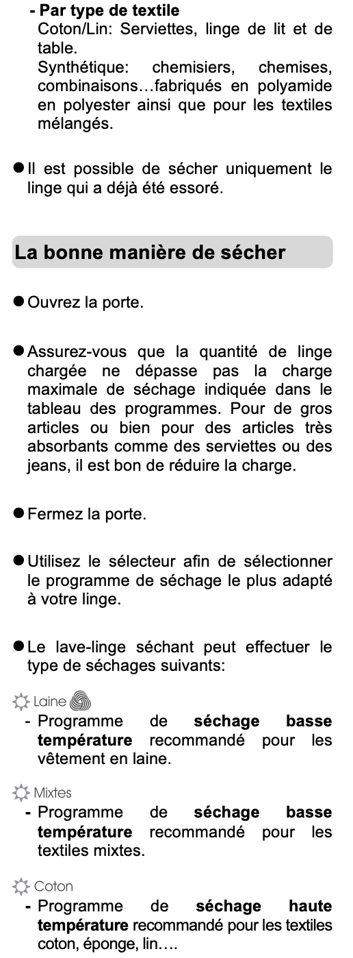 la technologie NFC et lisez directement le chapitre CYCLE DE SECHAGE dans le mode d'emploi