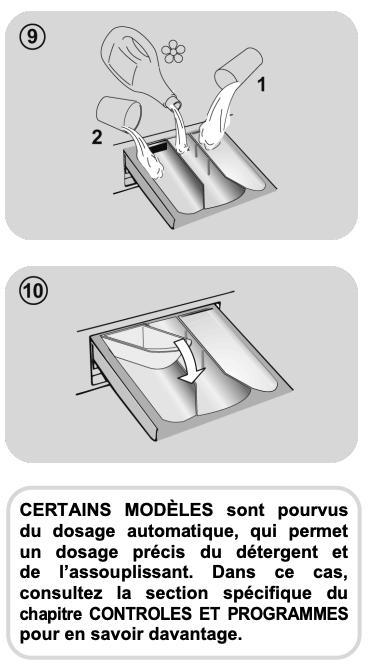 Lisez le chapitre TIROIR A DETERGENT dans le mode d'emploi de la notice