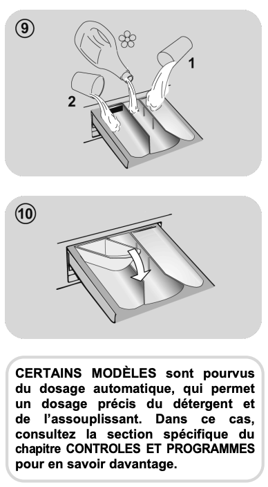 Lisez le chapitre TIROIR A DETERGENT dans le mode d'emploi de la notice