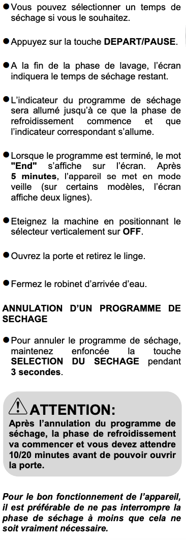 Lisez le chapitre CYCLE AUTOMATIQUE LAVAGE + SECHAGE dans le mode d'emploi de la notice