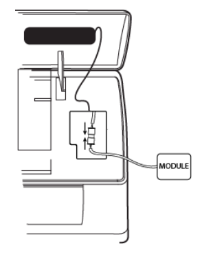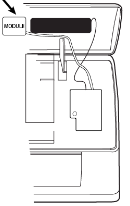 5. Coller le module WIFI au dos du panneau frontale, à côté du boitier noir. Une bande adhesive au dos du module est prévu à cet effet.