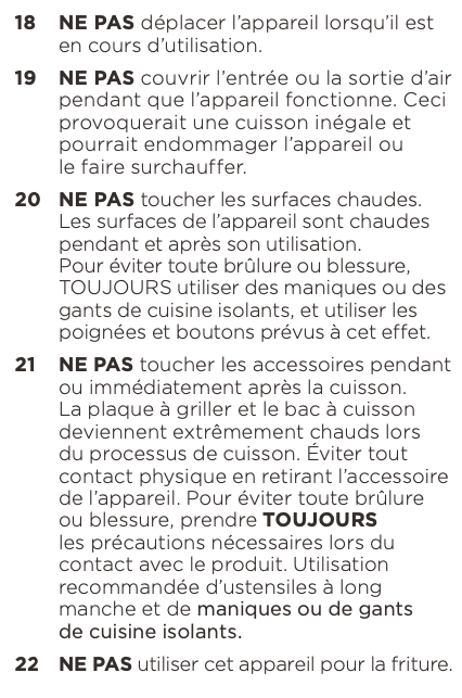 Lisez le chapitre MISES EN GARDE IMPORTANTES dans le mode d'emploi de la notice
