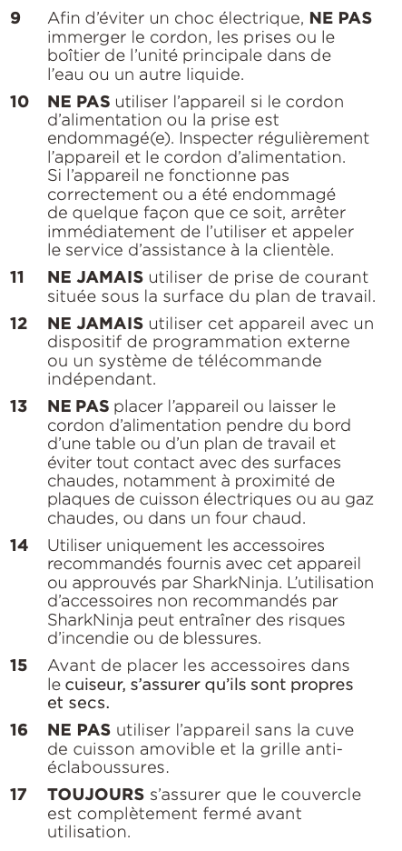 Notice Ninja AG301EU : Section MISES EN GARDE IMPORTANTES