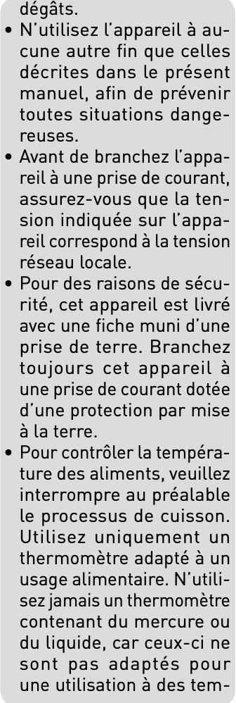 Lisez le chapitre Consignes de sécurité dans le mode d'emploi de la notice