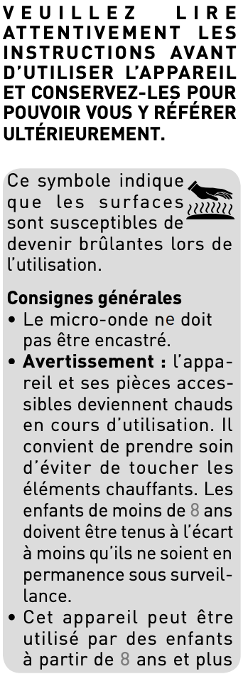 Notice Valberg MWO 34 CG X343C : Section Consignes de sécurité