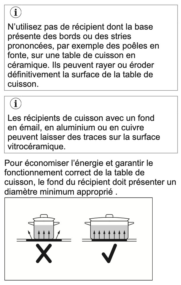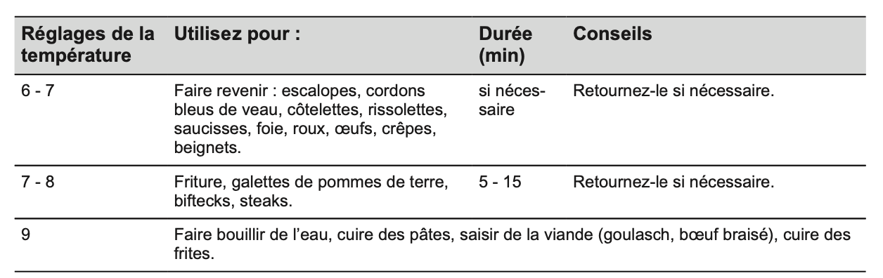 Lisez le chapitre TABLE DE CUISSON - CONSEILS dans le mode d'emploi de la notice
