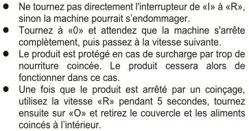 Lisez le chapitre AVERTISSEMENT/PROTECTION dans le mode d'emploi de la notice