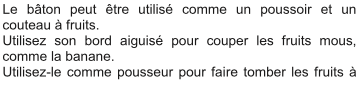 Lisez le chapitre BATON POUSSOIR dans le mode d'emploi de la notice