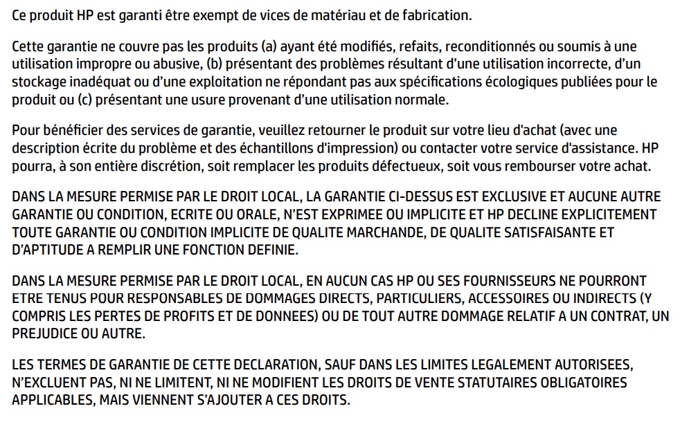 Notice HP LASERJET MFP M234SDN Garantie Premium de HP (protection des consommables) : Déclaration de garantie limitée relative aux cartouches d'encre LaserJet