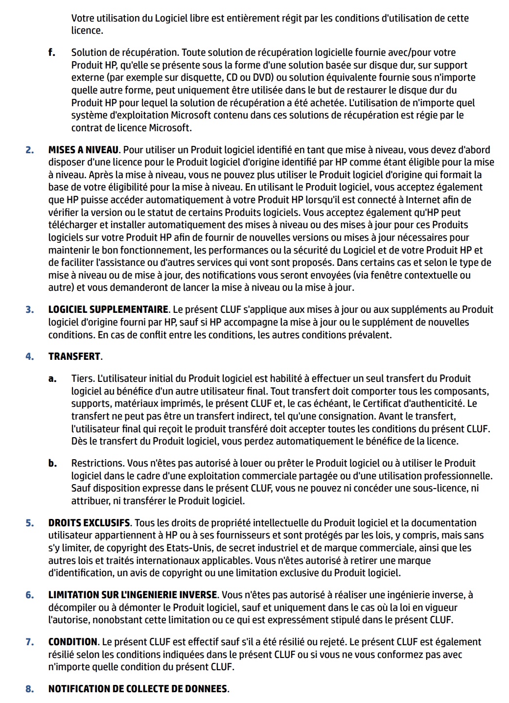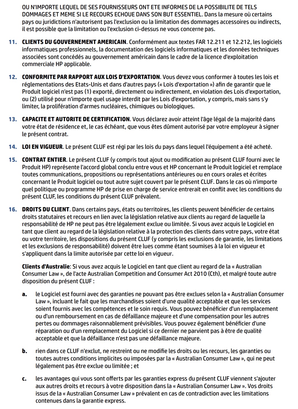 Notice HP LASERJET MFP M234SDN Contrat de Licence Utilisateur Final