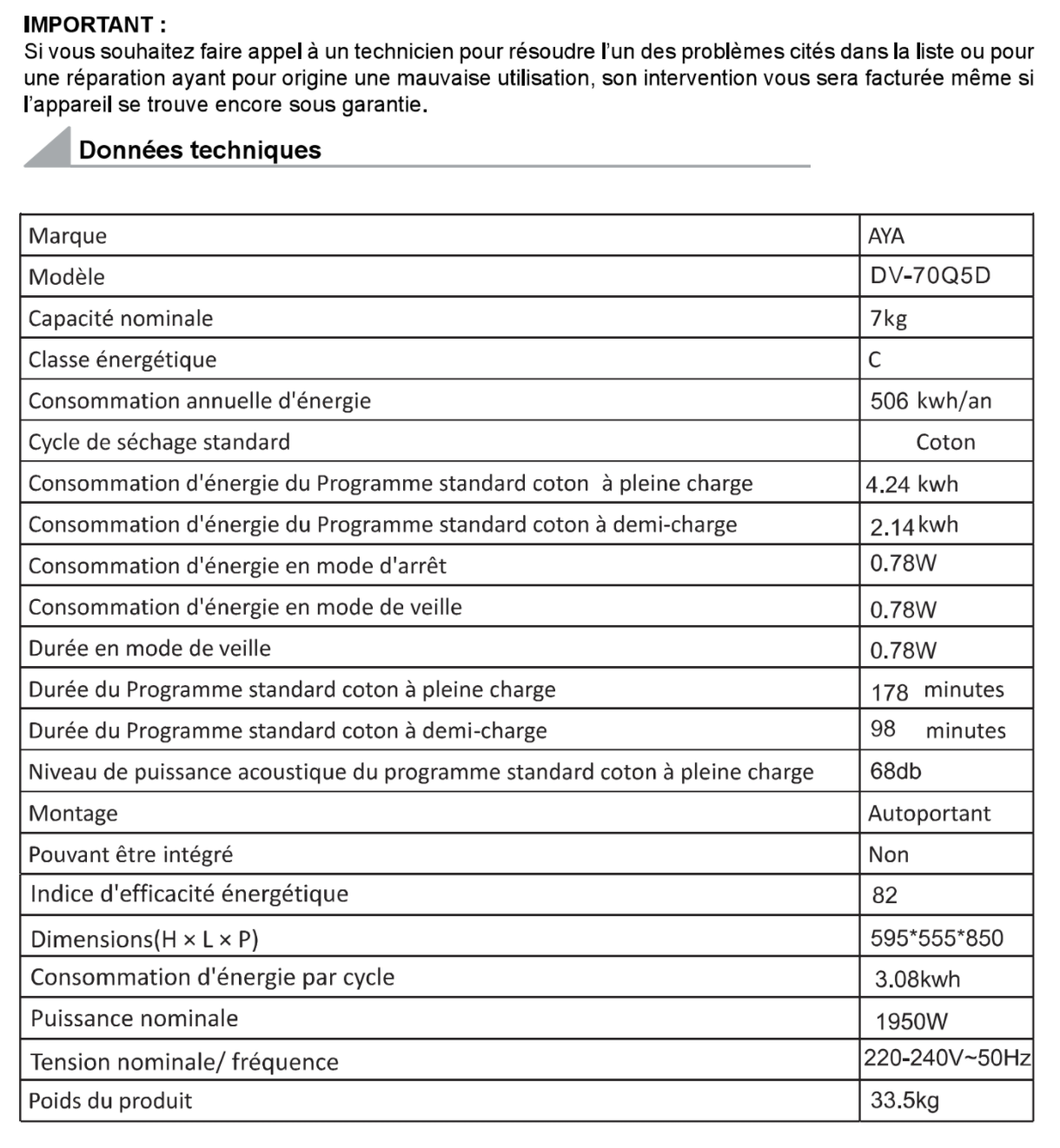 Sèche-linge hublot DV-70Q5D 7kg blanc . Rapprochez votre smartphone équipé de