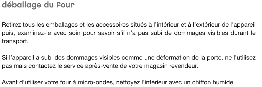Lisez le chapitre Déballage du four dans SAV de la notice