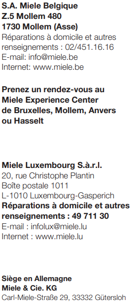 Notice Miele G 5212 SC BLANC Contact