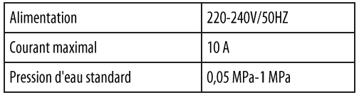 Lisez le chapitre Spécifications techniques dans SAV de la notice