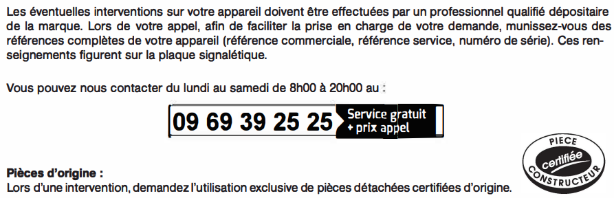 Lisez le chapitre Interventions FRANCE dans SAV de la notice