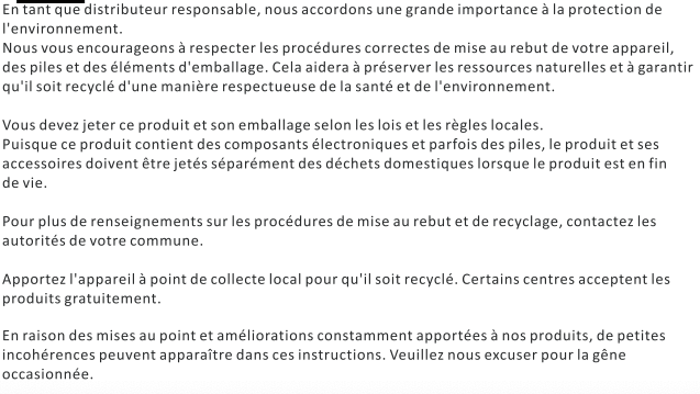 Lisez le chapitre MISE AU REBUT dans SAV de la notice
