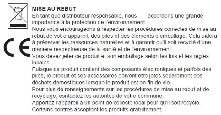 Lisez le chapitre MISE AU REBUT dans SAV de la notice