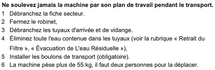 Lisez le chapitre TRANSPORT ET MANUTENTION dans SAV de la notice