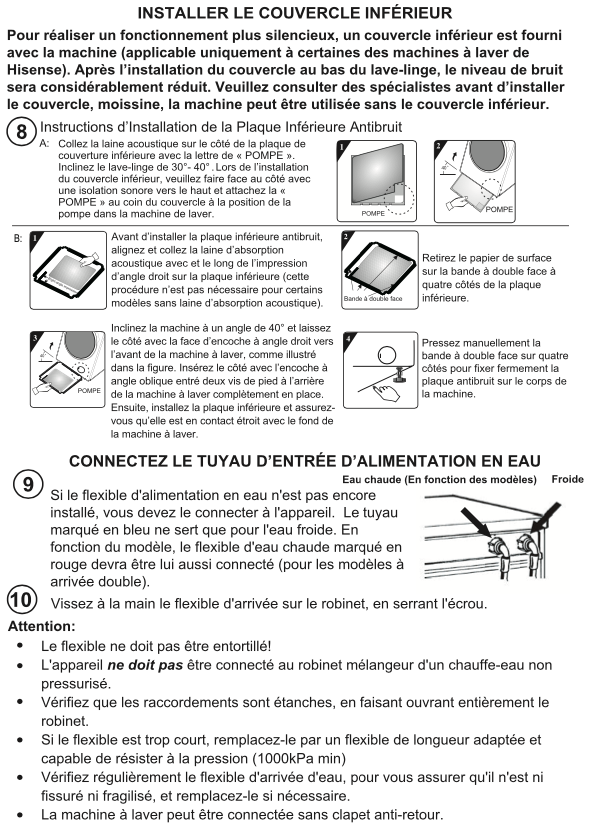 Notice Hisense WD1014QRAWT GUIDE D'INSTALLATION