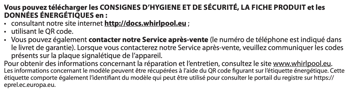 Plus besoin de télécharger la notice d'utilisation Whirlpool
