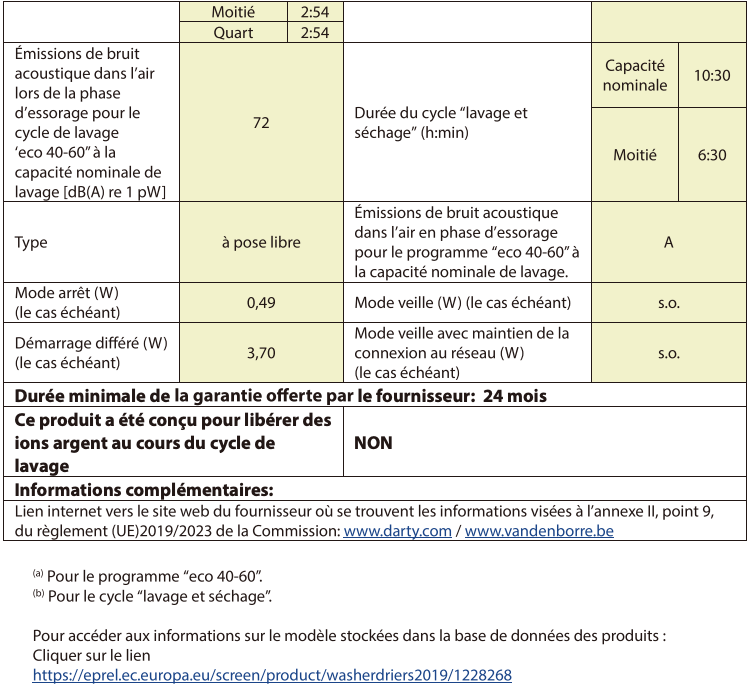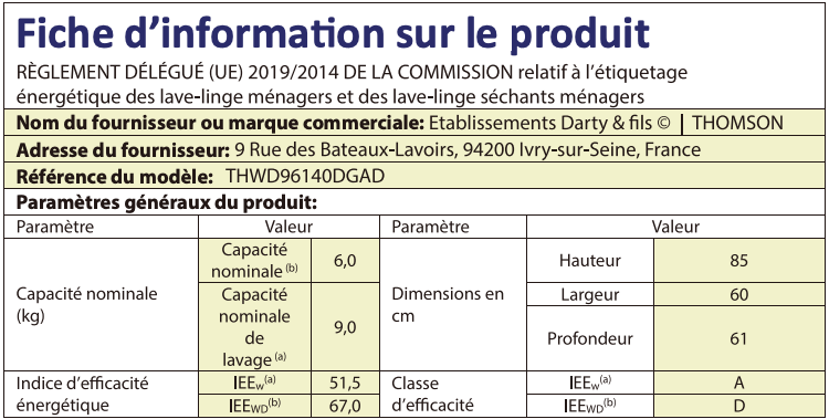 Notice Thomson THWD96140DGAD Fiche d’informa on sur le produit