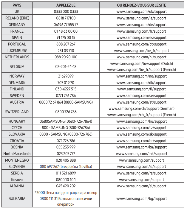 Notice Samsung WD80T554DBW Coordonnées de contact