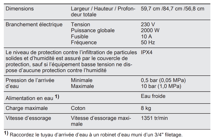 Lisez le chapitre DONNÉES TECHNIQUES dans SAV de la notice