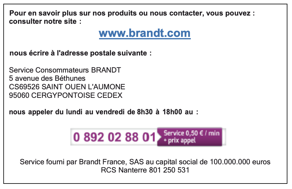 Notice Brandt WFB106QW Relations consommateurs France