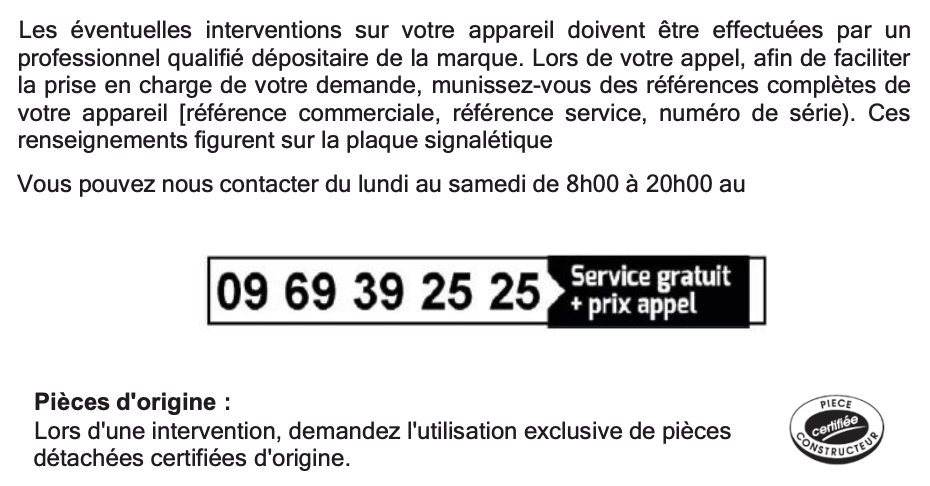 Lisez le chapitre Interventions France dans SAV de la notice
