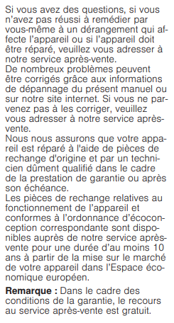 Lisez le chapitre Service après-vente dans SAV de la notice