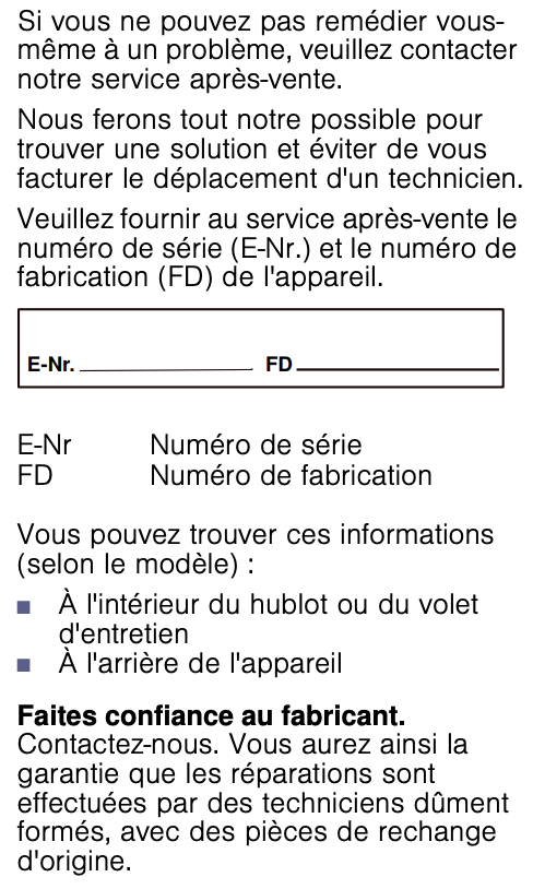 Lisez le chapitre Service après-vente dans SAV de la notice