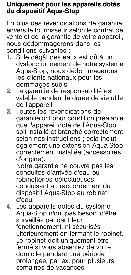 Lisez le chapitre Garantie Aqua-Stop dans SAV de la notice