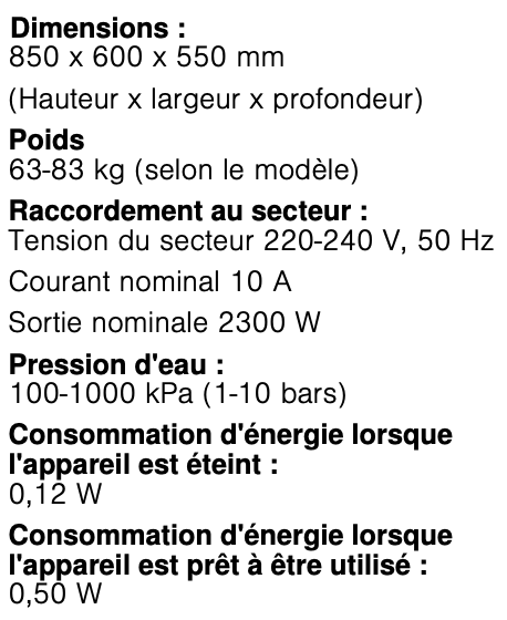 Notice Bosch WAN2816OFF/32 Caractéristiques techniques