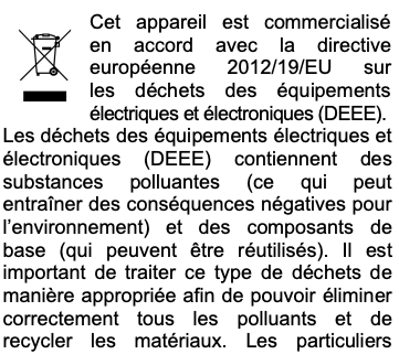 Lisez le chapitre Règles environnementales dans SAV de la notice